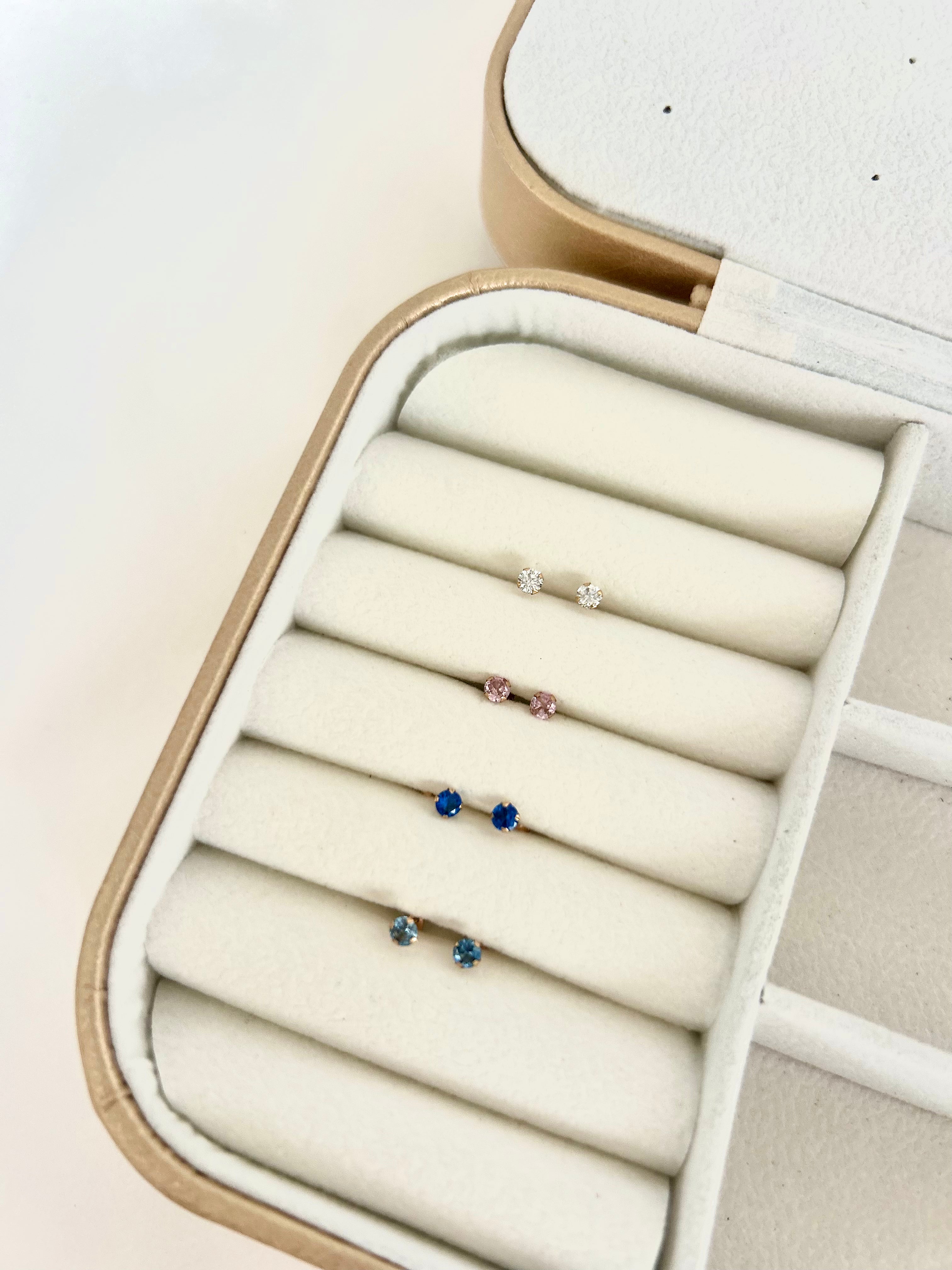 El inicio perfecto con un toque de brillo. Abridores de Oro 18k con circon transparente,  Azul, Rosa, y Jade  perfecto para recién nacida o piercing.