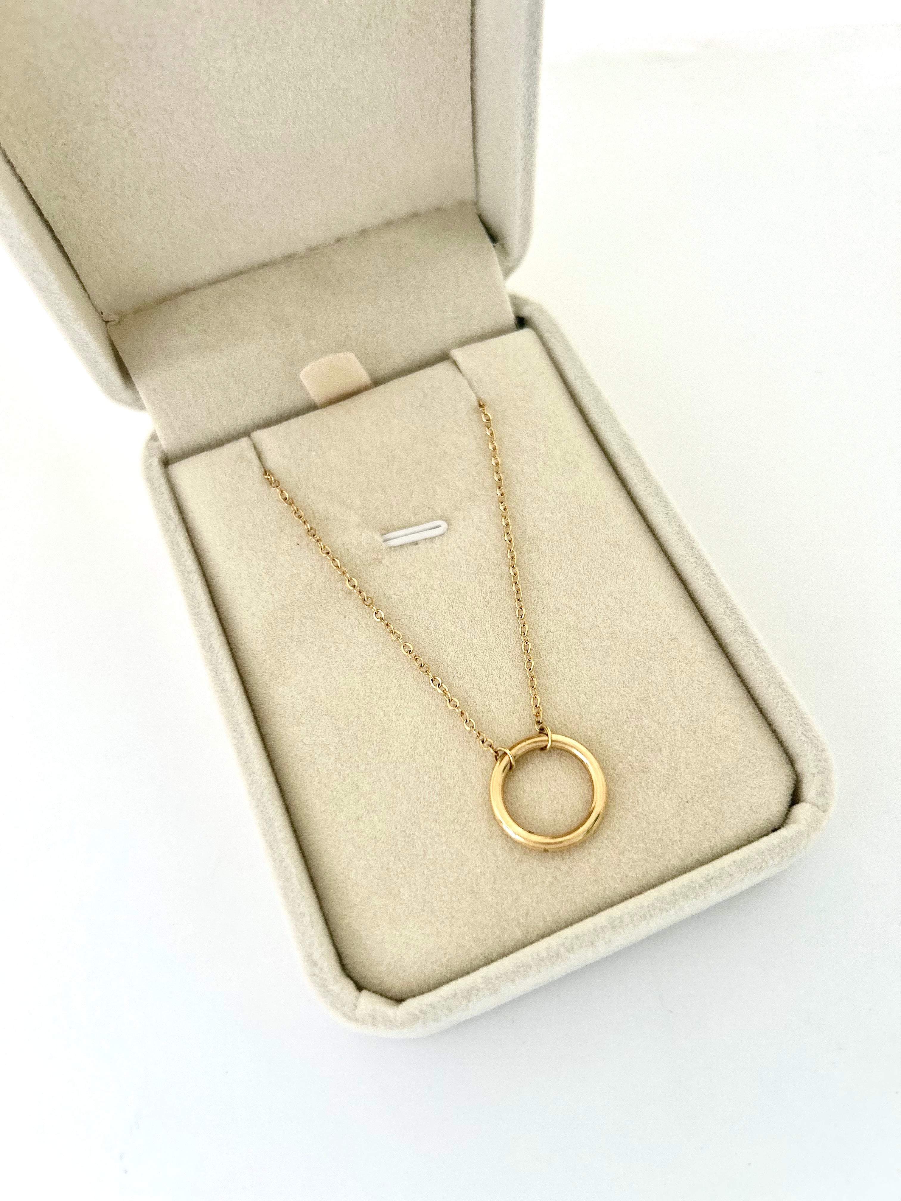 Collar de 45cm regulable a 40cm de Oro 18k amarillo, detalle en el centro , círculo (Karma) Todas nuestras joyas incluyen empaque de regalo y certificado de garantía.